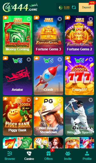 C444 Game is an Android online gaming platform that offers multiple game categories in one mobile application. Users can register an account, explore different games, manage their wallet, and use local payment methods such as JazzCash and Easypaisa.