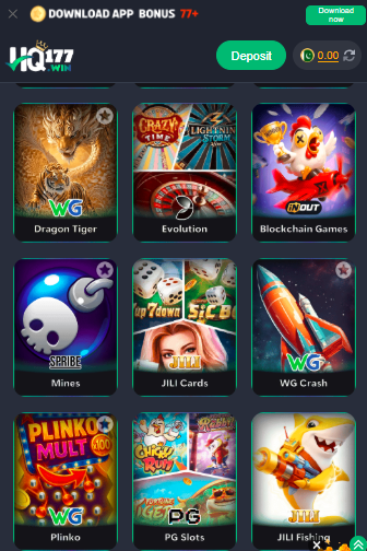 HQ177 has a clean and easy-to-use layout. Menus for games, wallet, and profile are clearly visible, making navigation simple even for new users.
