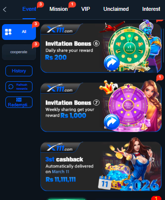 - Redeem Rewards – Rewards appear in your wallet once conditions are met and can be used for games or withdrawals.